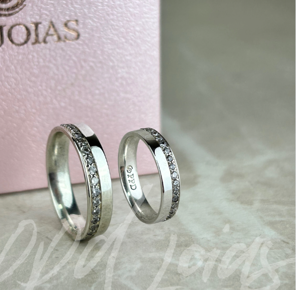Par de Aliança Vivar Cravejada (4mm) - PRATA 950