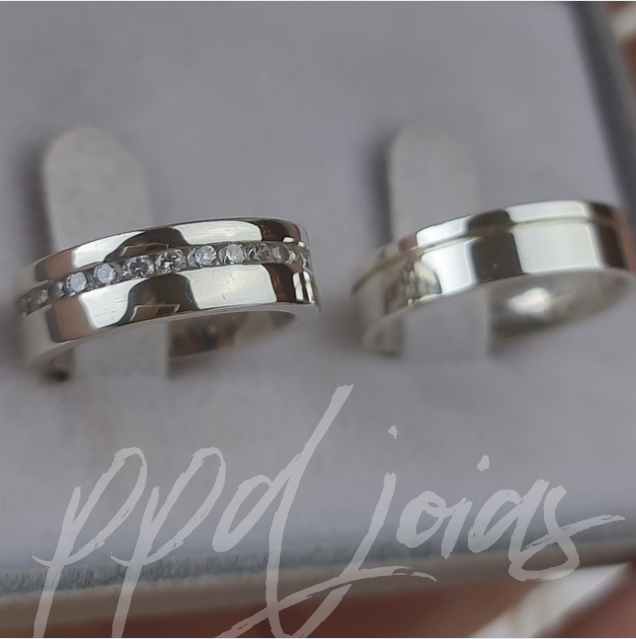 Par de Aliança Vivar Cravejada Plus (6mm) - Prata 950